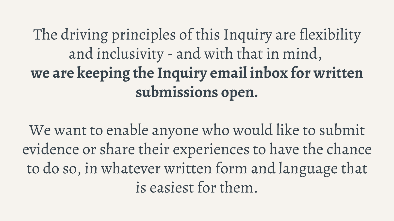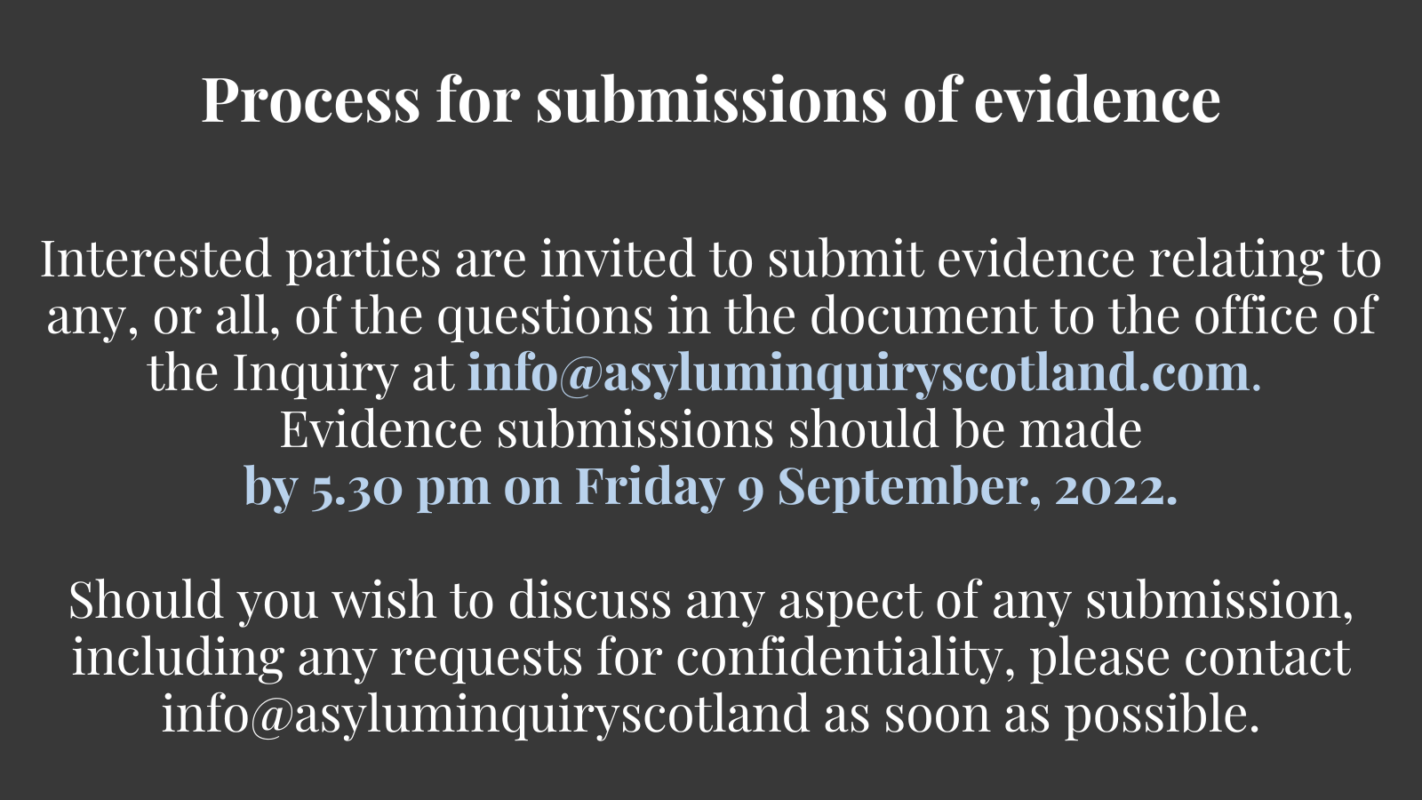 This Call for Evidence is seeking testimony and insights from individuals and organisations. Asylum Inquiry Scotland would like to particularly hear from people with lived experience, community-based organisations, statutory bodies, and from all levels of government.